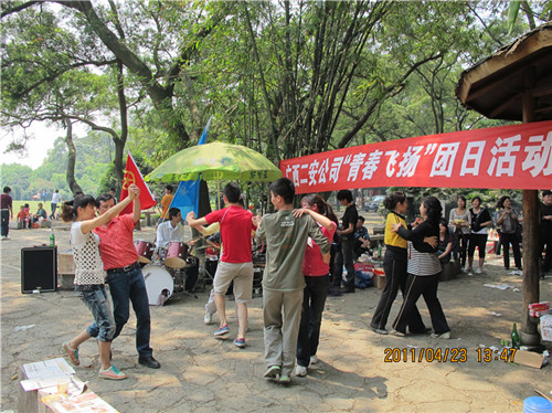 2011年4月23日,集團二安公司團委組織全公司各基層團支部在柳州市雀山公園舉行了主題為“青春飛揚” 露天音樂(lè )會(huì )團日活動(dòng),迎接第92個(gè)“五四青年節”的到來(lái)。公司董事長(cháng)、總經(jīng)理、黨委副書(shū)記黃鼎龍;公司黨委書(shū)記、紀委書(shū)記、工會(huì )主席藍錦??;公司副總經(jīng)理覃幼轍;公司副總經(jīng)理、第三分公司經(jīng)理莫雄清參加了此次活動(dòng)。并為榮獲集團公司一屆二次職代會(huì )文藝晚會(huì )一等獎的演員及榮獲公司2010年度“十佳青年崗位能手”頒發(fā)榮譽(yù)證書(shū)及獎金?;顒?dòng)集表彰、素質(zhì)拓展訓練、氣排球比賽,文藝表演等于一體,形式新穎,精彩紛呈。團員青年們積極參與,各自表演自己的特長(cháng),唱歌、跳舞等節目層出不窮,活動(dòng)現場(chǎng)氣氛熱烈,高潮迭起,展現出了二安青年員工朝氣蓬勃、積極向上的精神面貌,吸引了不少?lài)^(guān)者的眼球。此次活動(dòng)的開(kāi)展,增進(jìn)了團員青年們的溝通交流,企業(yè)凝聚力進(jìn)一步增強,更好地促進(jìn)廣大團員青年員工立足崗位,扎實(shí)工作,不斷創(chuàng )新,充分發(fā)揮團員青年生力軍作用,在公司建功立業(yè)過(guò)程中體現青年人的人生價(jià)值,為公司健康快速發(fā)展奉獻青春力量!