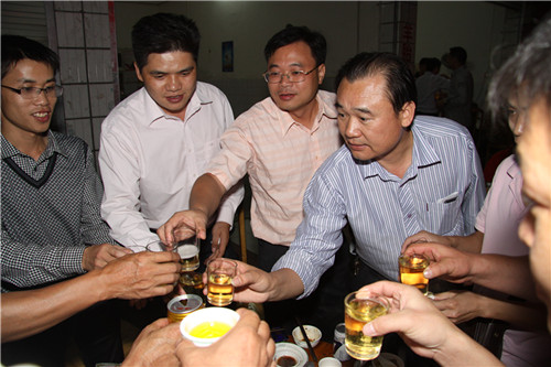 集團公司黨委副書(shū)記曾慶生(左四)、公司黃鼎龍董事長(cháng)(左三)